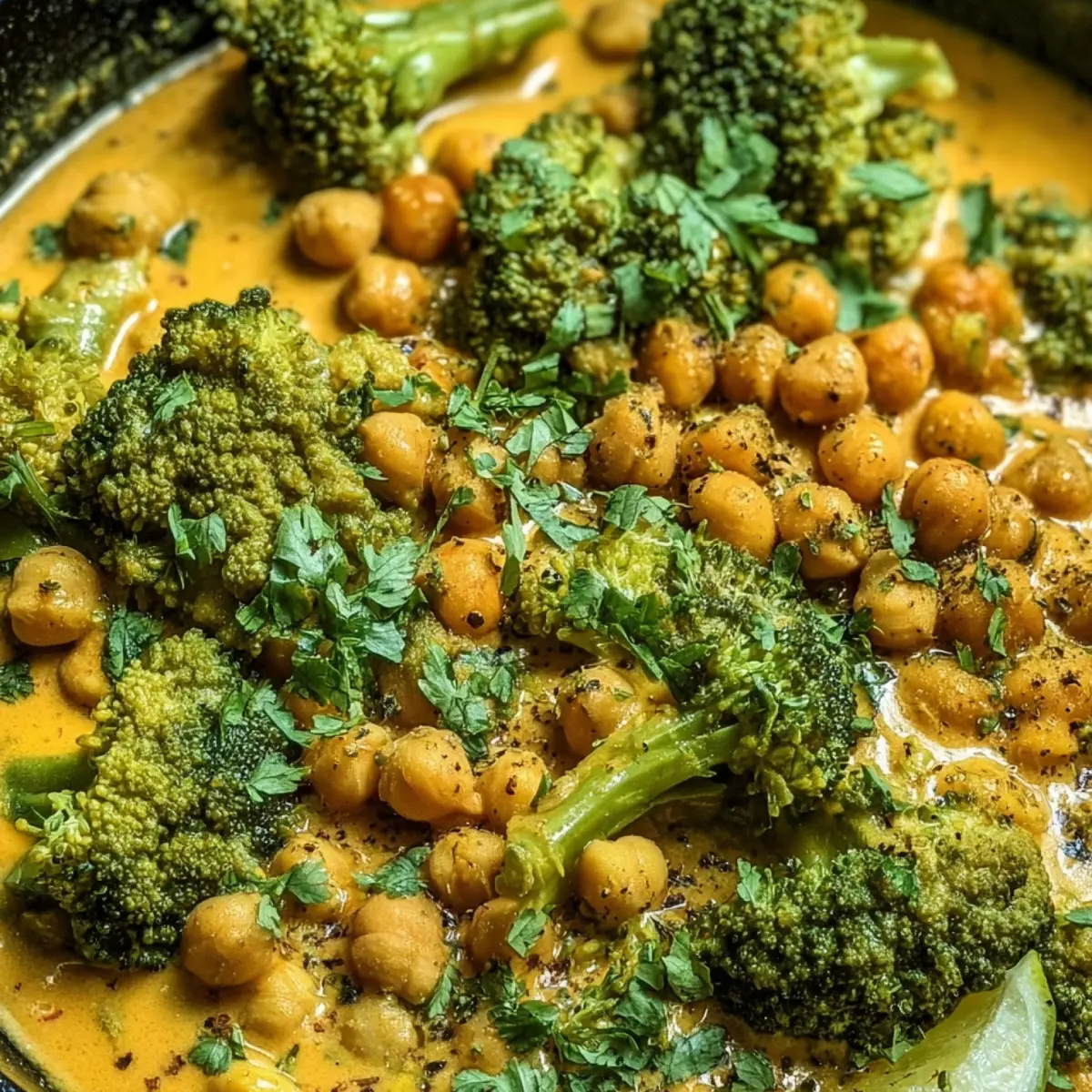 Für mich ist es fast zum festen Ritual geworden, einmal in der Woche einen großen Topf von diesem Curry zu kochen. Ich liebe es, wie sich die goldgelbe Kurkuma-Farbe und die tiefen, erdigen Aromen von Kreuzkümmel und Koriander ganz langsam mit der milden Schärfe der Chili verbinden. Das Ergebnis? Ein Curry, das nicht nur satt macht, sondern wirklich von innen wärmt. Und glaub mir: Selbst absolute Brokkoli-Skeptiker geraten bei diesem Rezept ins Schwärmen – nicht zuletzt, weil die Kichererbsen mit ihrer nussigen Note das Curry wunderbar abrunden.