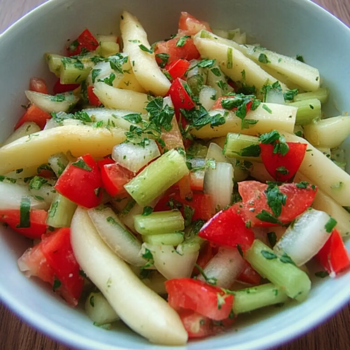 An den ersten warmen Tagen des Jahres zieht es mich immer in die Küche, um endlich wieder einen Teller Bunter Spargelsalat auf die Terrasse zu tragen. Es gibt kaum etwas, das frischer, knackiger und duftender daherkommt, als weißer Spargel in Begleitung von reifen Tomaten, kühler Gurke und jeder Menge grünem Basilikum. Noch während ich das Dressing zusammenrühre, breitet sich ein herrlich zitroniger Duft aus – es ist diese Mischung aus leichter Säure, milder Süße und dem butterzarten Spargel, die diesen Salat zum Frühlingshighlight macht. Perfekt als schnelles Mittagessen, als bunter Star auf dem Buffet oder einfach solo mit knusprigem Brot: Bunter Spargelsalat schmeckt immer nach Sonne und Leichtigkeit.