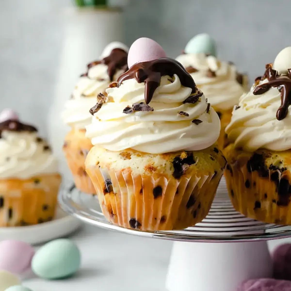 Das Sahnetopping ist der Gegensatz zum lockeren Teig – weich, kühl, schmeichelnd, dabei stabil genug, um nicht davon zu fließen. Beim Abbeißen knackt das kleine Schokoei, während die luftige Creme und der saftige Boden auf der Zunge zergehen. Jeder Cupcake schmeckt wie eine Mini-Feierlichkeit und wirkt nie zu süß, sondern absolut ausbalanciert.