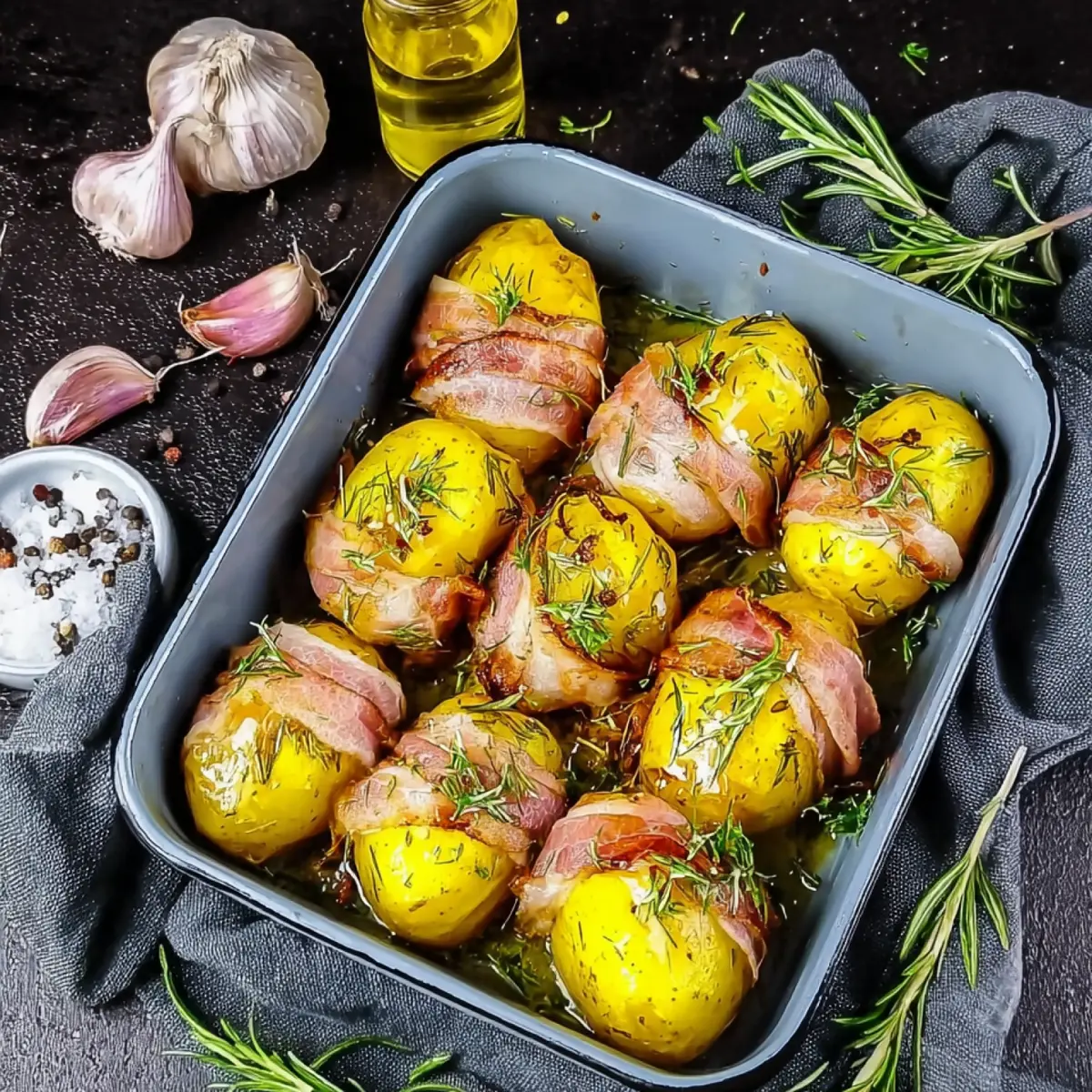 Wenn der Sommer endlich wieder nach draußen lockt und der Grill angeschmissen wird, gibt es für mich ein absolutes Muss: Kartoffeln im Speckmantel. Ich verbinde sie mit langen Abenden im Garten, dem Duft von Rosmarin in der warmen Brise und dem zufriedenen Gesicht meiner Familie, wenn das Blech mit den würzigen, goldbraunen Päckchen endlich auf den Tisch kommt. Du brauchst nicht viel Schnickschnack – ein paar Kartoffeln, Bacon, etwas frische Kräuter, mehr braucht es nicht. Aber wehe, du unterschätzt, was im Ofen passiert: Während der Bacon in der Hitze knusprig brutzelt, saugen die Kartoffeln das Aroma des Specks auf, der Knoblauch wird buttrig und aromatisch, und der Rosmarin verströmt diesen unwiderstehlichen Duft… da fällt es echt schwer, zu warten, bis sie ganz fertig sind.
