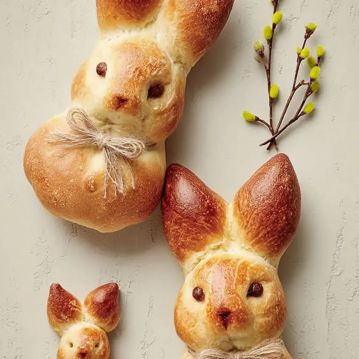 - Backe die Häschen im gut vorgeheizten Ofen, bis sie satt goldbraun sind und der Duft nach Butter, Hefe und einem Hauch Ostern durch die Küche zieht. Lasse sie anschließend auskühlen und binde nach Belieben bunte Schleifen um die Hasenhälse.